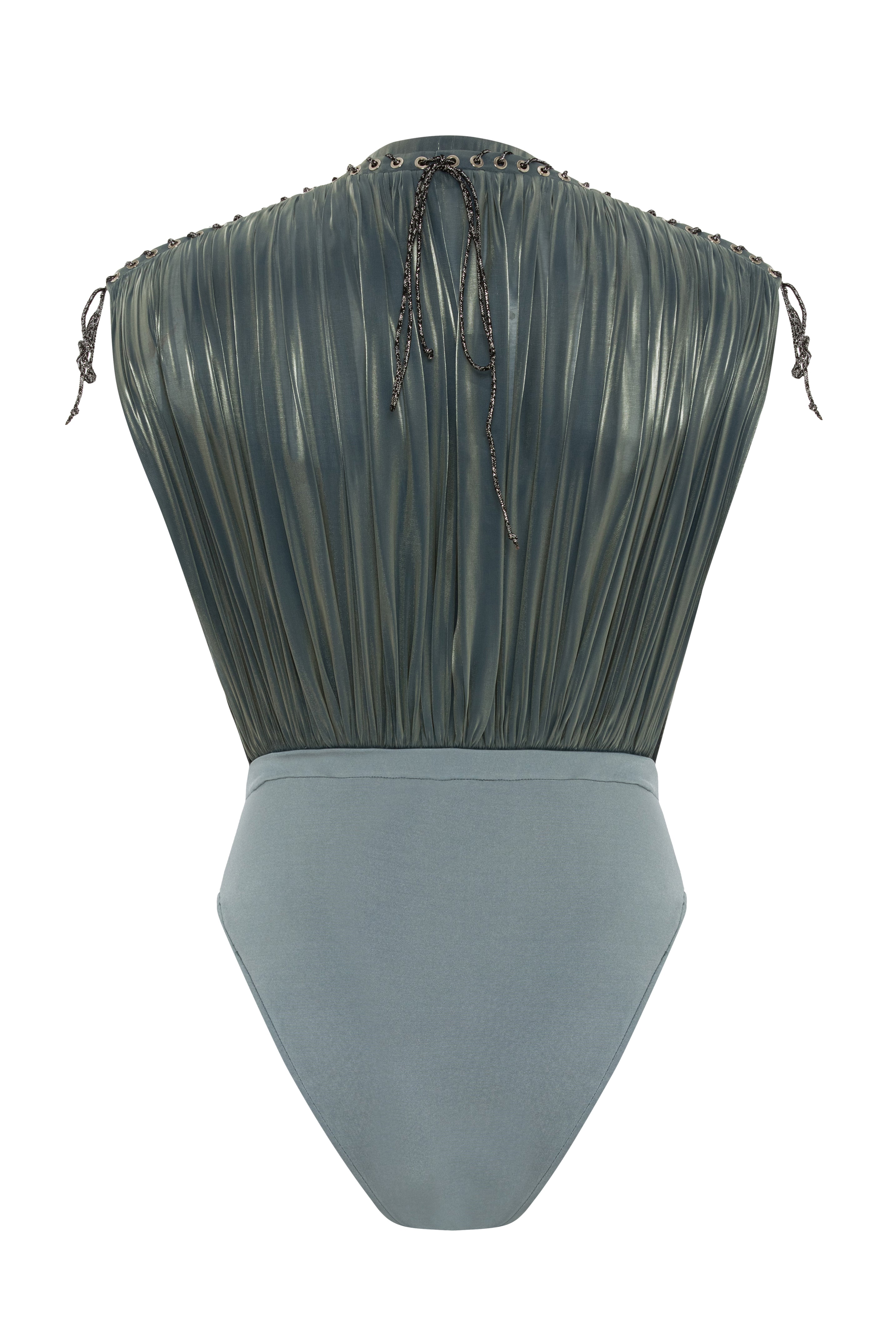 Organza bodysuit with bird eye details on shoulder.